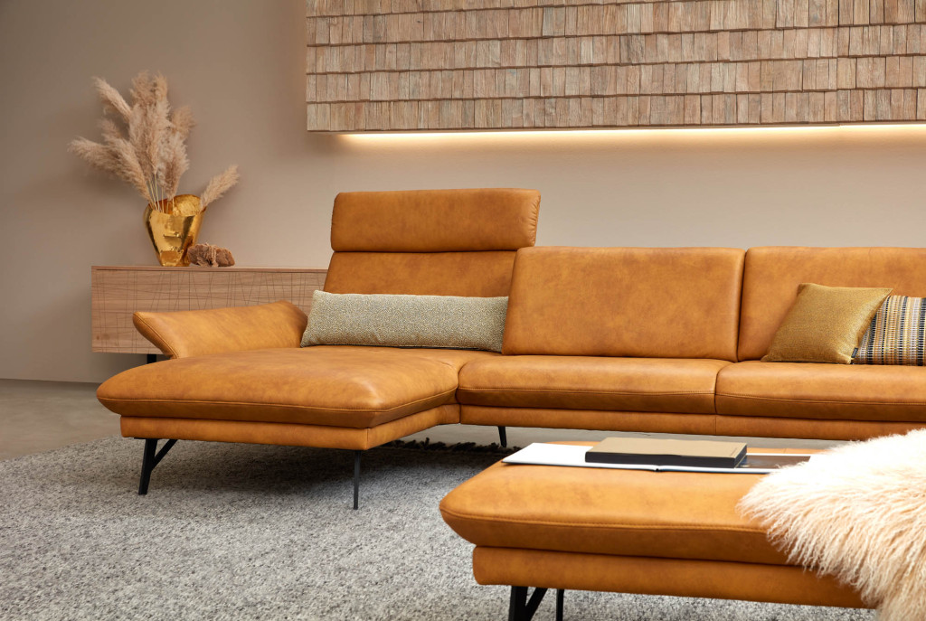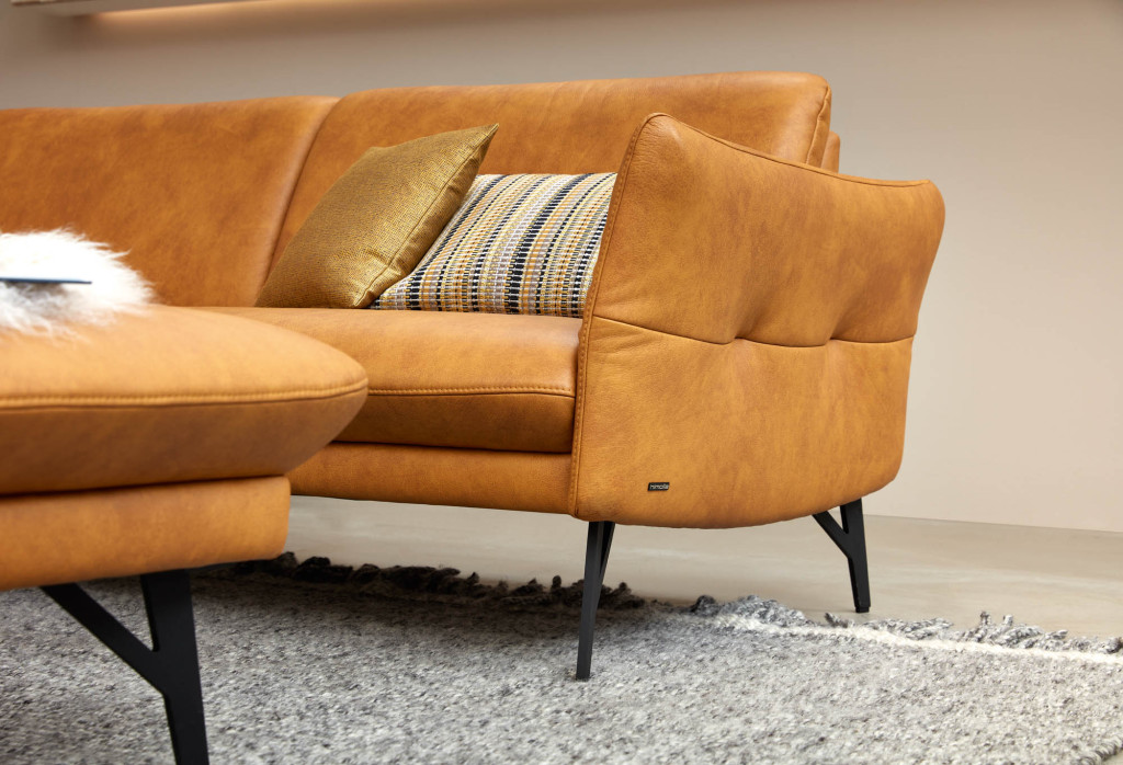 Wählen Sie aus einer großen Vielfalt an hochwertigen Stoff- und Lederbezügen in unterschiedlichen Farben und Qualitäten, um Ihr Möbelstück perfekt an Ihren Wohnstil anzupassen. Viele Materialien sowie Schaumstoffe und feste tragende Elemente sind zusätzlich durch eine langjährige Garantie abgesichert. Die eleganten Metallfüße sind in mehreren modernen Farbtönen erhältlich und setzen stilvolle Akzente. Auch der Sitzkomfort lässt sich nach Wunsch anpassen – von weich bis mittelfest. Durch die zahlreichen Konfigurationsmöglichkeiten gestalten Sie Aussehen und Bequemlichkeit ganz nach Ihren persönlichen Vorstellungen.