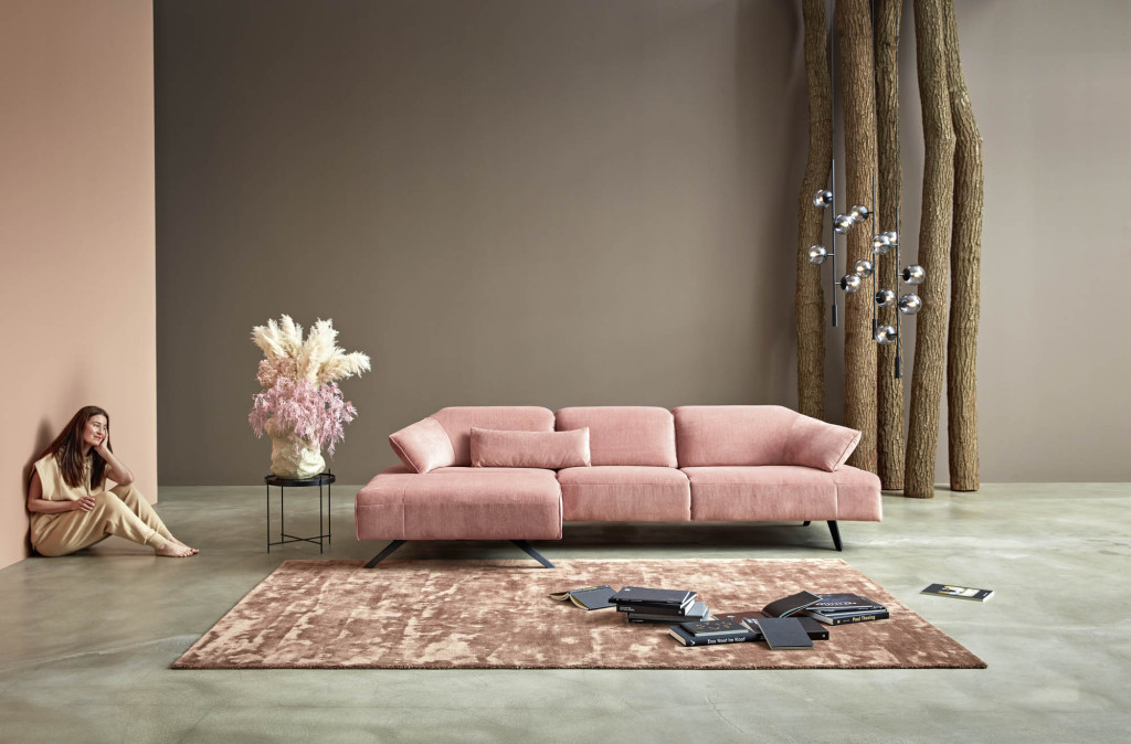 Dieses Sofa verbindet ausgezeichnetes Design mit durchdachten Funktionen. Es ist als Einzelsofa oder als großzügige Ecklösung erhältlich und überzeugt durch seine moderne, einladende Formensprache. Besonders charakteristisch sind die weich ausgeformten, mitlaufenden Seitenteile, die ein angenehmes „umschließendes“ Sitzgefühl vermitteln.