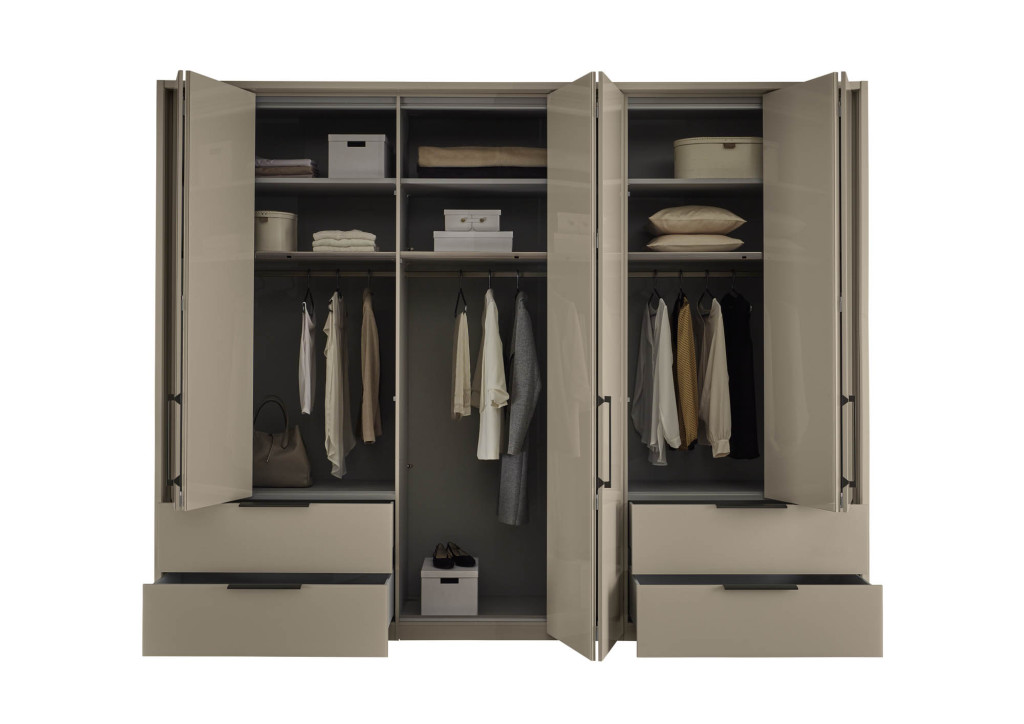 Das Schrankprogramm C1-125 von Casada verbindet zeitlose Eleganz mit moderner Klarheit. Fronten in Glas in 3 verschiedenen Farbtönen sorgen für ein edles Erscheinungsbild, das durch die optionalen Spiegeltüren zusätzlich aufgelockert wird. So entsteht ein harmonisches Möbelstück, das Schlafzimmern eine stilvolle Leichtigkeit verleiht.