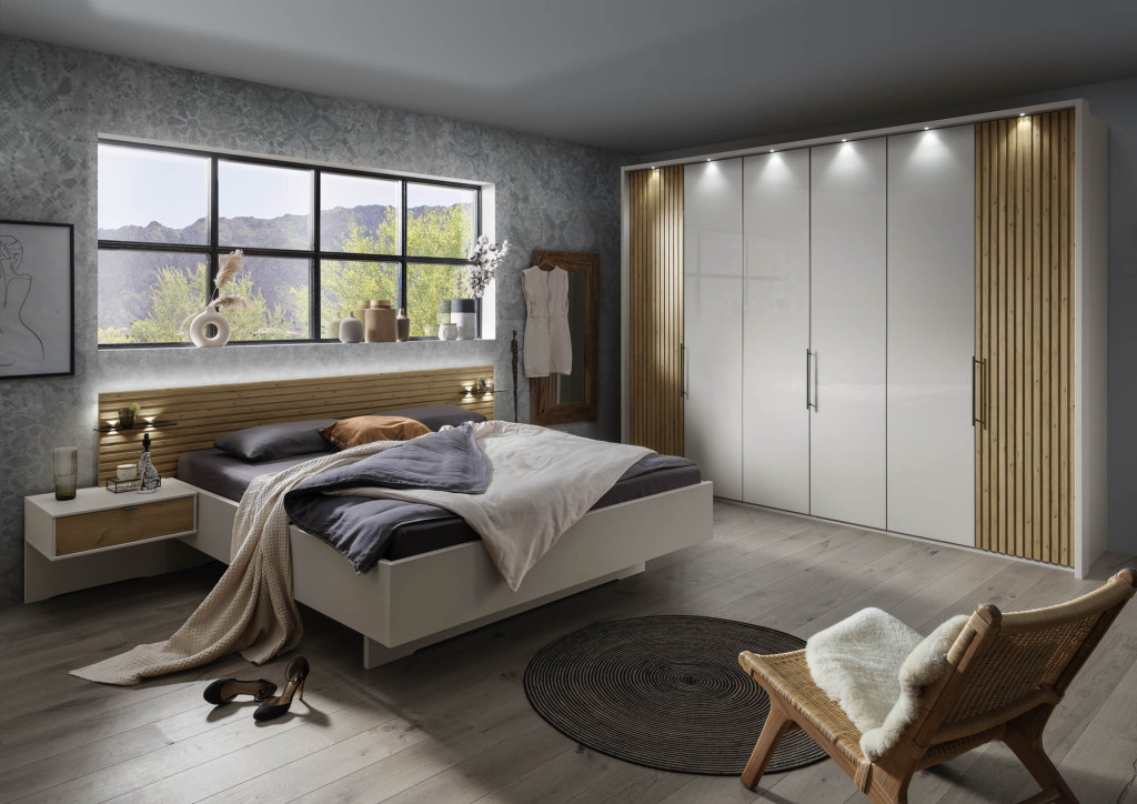 Dieses Schlafzimmerprogramm verbindet zeitlose Eleganz mit klarer Formensprache und hochwertigen Materialien. Mit vielfältigen Größen-, Farb- und Ausstattungsoptionen lässt es sich ganz individuell planen und passt sich Ihren Wohnvorlieben perfekt an – für ein stilvolles Ambiente mit hohem Komfort und Funktionalität.
