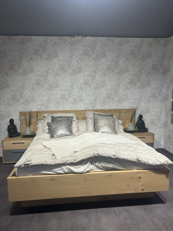 in Balkeneiche furniert (PG1) // schwebendes Fußteil // Höhe KT: 101cm // Höhe Bettseite: 48,4cm (Luxushöhe)