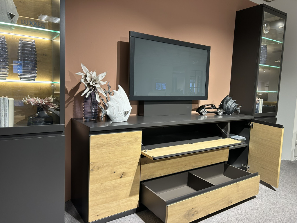 Front/Korpus: Lack graphit (2) // Absetzung Front bei TV-Element: Asteiche (2) // mit Griffleiste