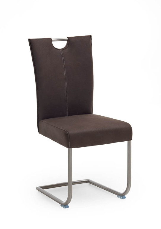 Stoff Microfaser, 100% Polyester, Farbe braun, mit ausgespartem Griff im Rücken aus Edelstahl, Gestell Rundrohr Edelstahl gebürstet, Sitzhöhe 49 cm, BHT ca. 43/98/57 cm