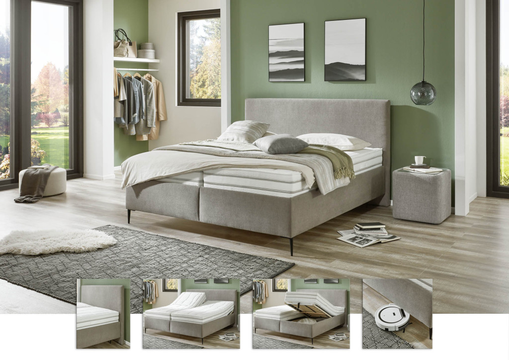 Verleihen Sie Ihrem Schlafzimmer einen Hauch von Eleganz und Komfort mit unserem stilvollen Polsterbett. Wählen Sie aus einer Vielfalt von Bettkästen, Matratzen, Lattenrahmen, Kopfteilen und Füßen, um das perfekte Bett für Ihre Bedürfnisse zu kreieren. Dieses Polsterbett bietet nicht nur höchsten Schlafkomfort, sondern auch praktischen Stauraum, der Ihr Schlafzimmer ordentlich und aufgeräumt hält. Jedes Detail, von der weichen Polsterung bis zu den anpassbaren Komponenten, wurde sorgfältig ausgewählt, um Ihnen ein unvergleichliches Schlaferlebnis zu bieten. Erleben Sie die Symbiose aus Ästhetik und Funktionalität, die Ihren Schlafbereich in eine Wohlfühloase verwandelt.