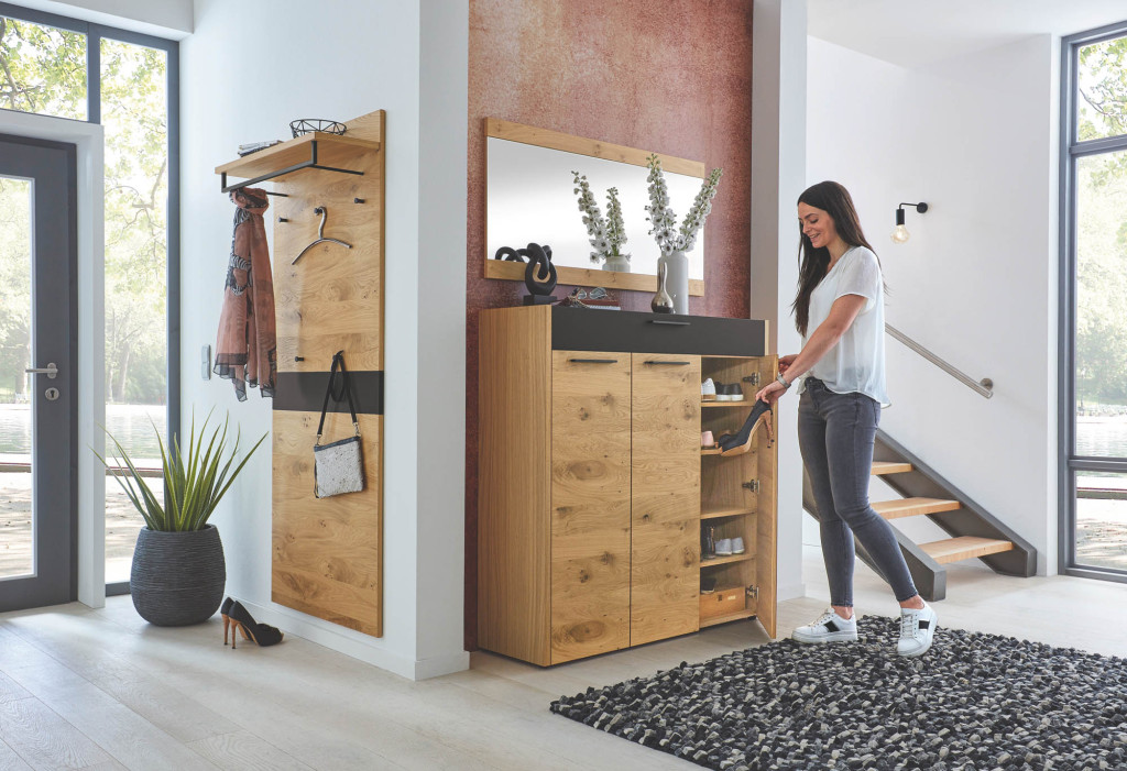Garderobenpaneel - 1 Hutablage, 5 Haken, BHT ca. 80/106/27 cm