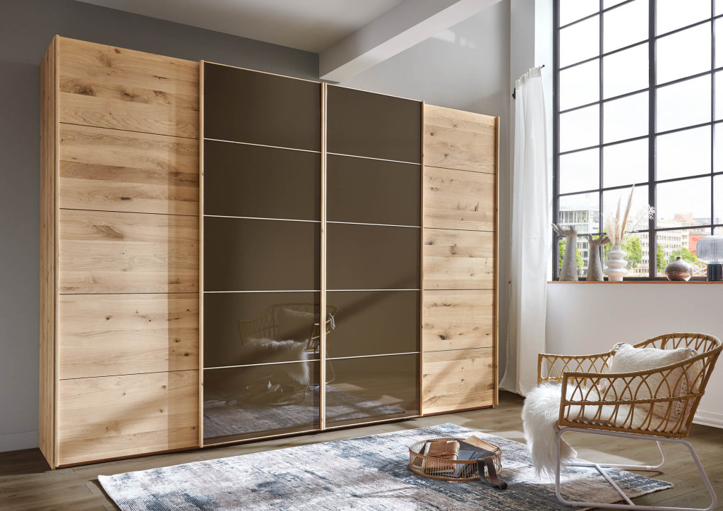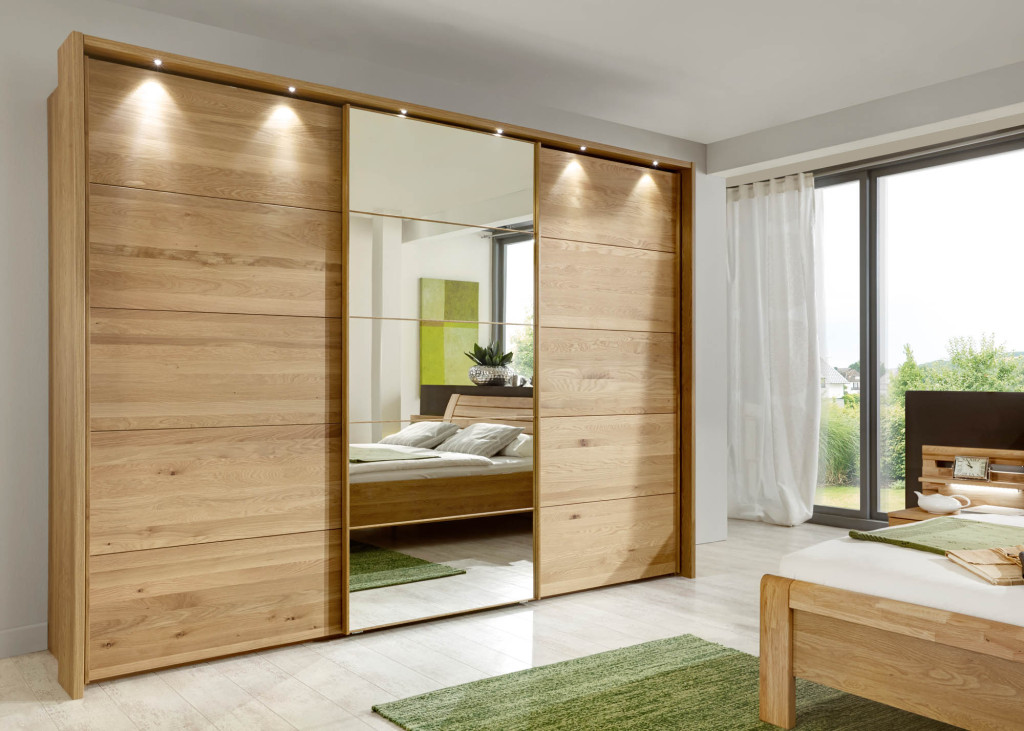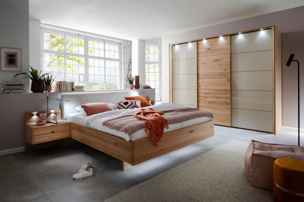 Gestalten Sie Ihr Schlafzimmer zu einer Oase der Ruhe und Eleganz mit unserer vielseitigen Schlafzimmerkollektion. Dank eines großzügigen Typenplans bietet diese Kollektion eine breite Palette an Gestaltungsmöglichkeiten, die sich harmonisch in Ihr Zuhause einfügen. Ob Sie sich für einen klassischen Drehtürenschrank oder einen modernen Schwebetürenschrank entscheiden, jedes Modell kann individuell auf Ihre Bedürfnisse abgestimmt werden. Die Option, einen Spiegel hinzuzufügen, verleiht nicht nur optische Weite und Helligkeit, sondern fügt auch ein Element praktischer Eleganz hinzu. Mit der Möglichkeit, Ihre Schranklösung durch eine optionale Beleuchtung zu ergänzen, schaffen Sie eine stimmungsvolle Atmosphäre, die Ihr Schlafzimmer in eine behagliche Rückzugsoase verwandelt. Unsere Schlafzimmermöbel kombinieren Funktionalität mit Design, um Ihnen einen Raum zu bieten, der Schönheit und Komfort in Einklang bringt.