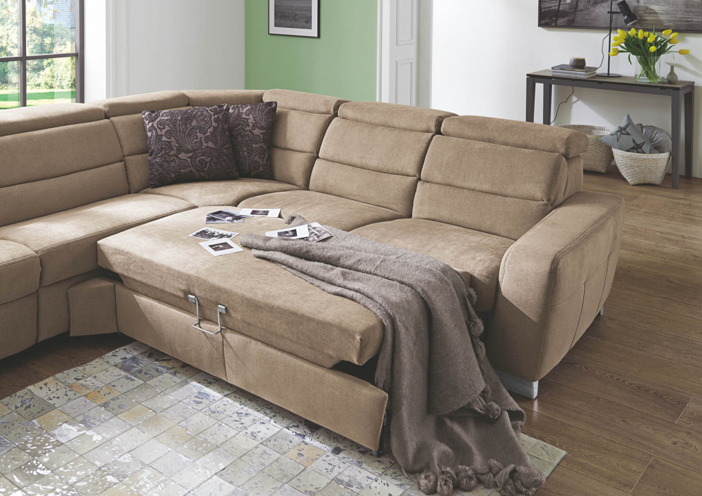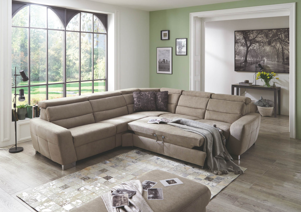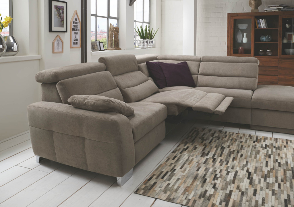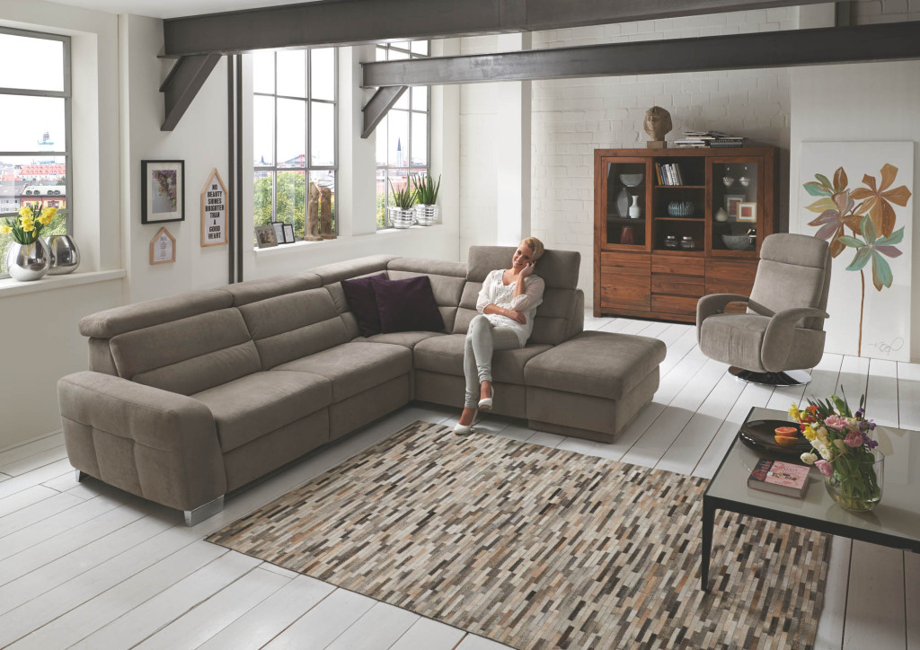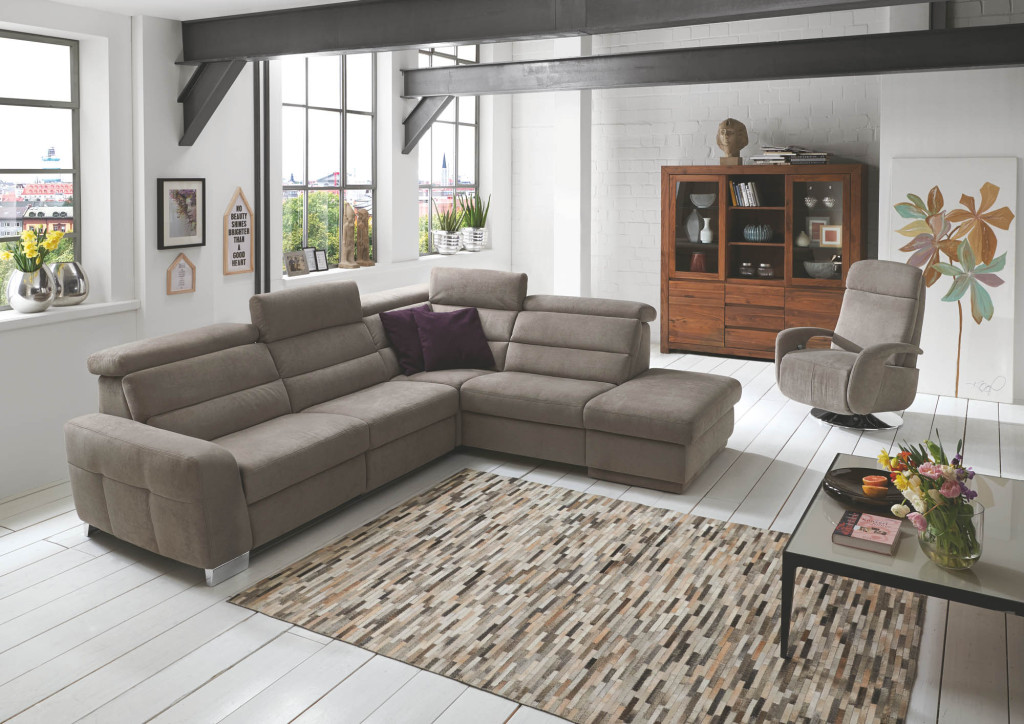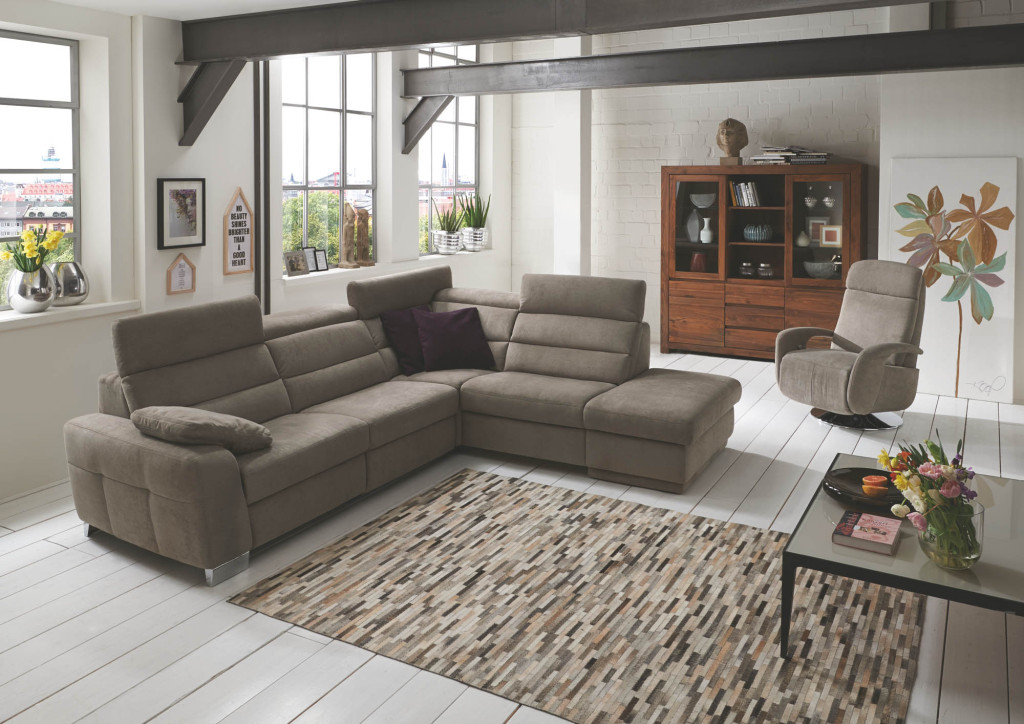1,5-Sitzer-Kombielement gerade mit Anstellhocker rechts, Kopfpolsterverstellung inklusive, BHT ca. 109/106/245 cm