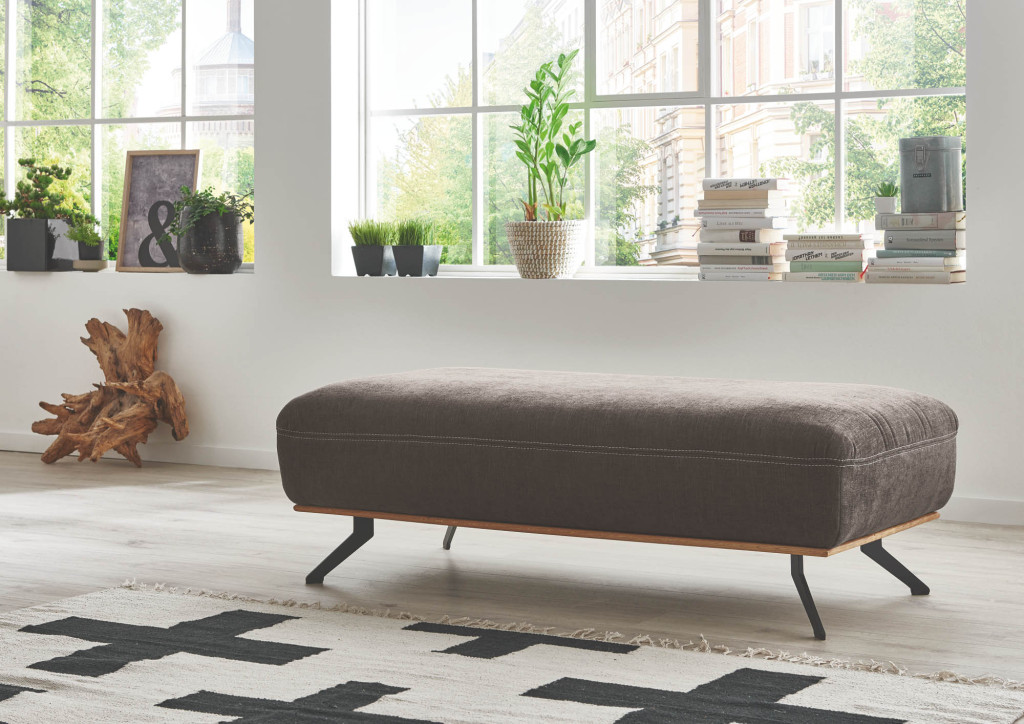 Das Sofa überzeugt mit einem schlanken, modernen Design und kreativen Akzenten, die sich harmonisch in verschiedenste Wohnstile einfügen. Ein stilvoller Sichtholzrahmen aus Wildeiche verleiht dem Modell eine warme, natürliche Ausstrahlung, während elegante Metallfüße in Schwarz oder Chrom für eine moderne Leichtigkeit und angenehme Bodenfreiheit sorgen.