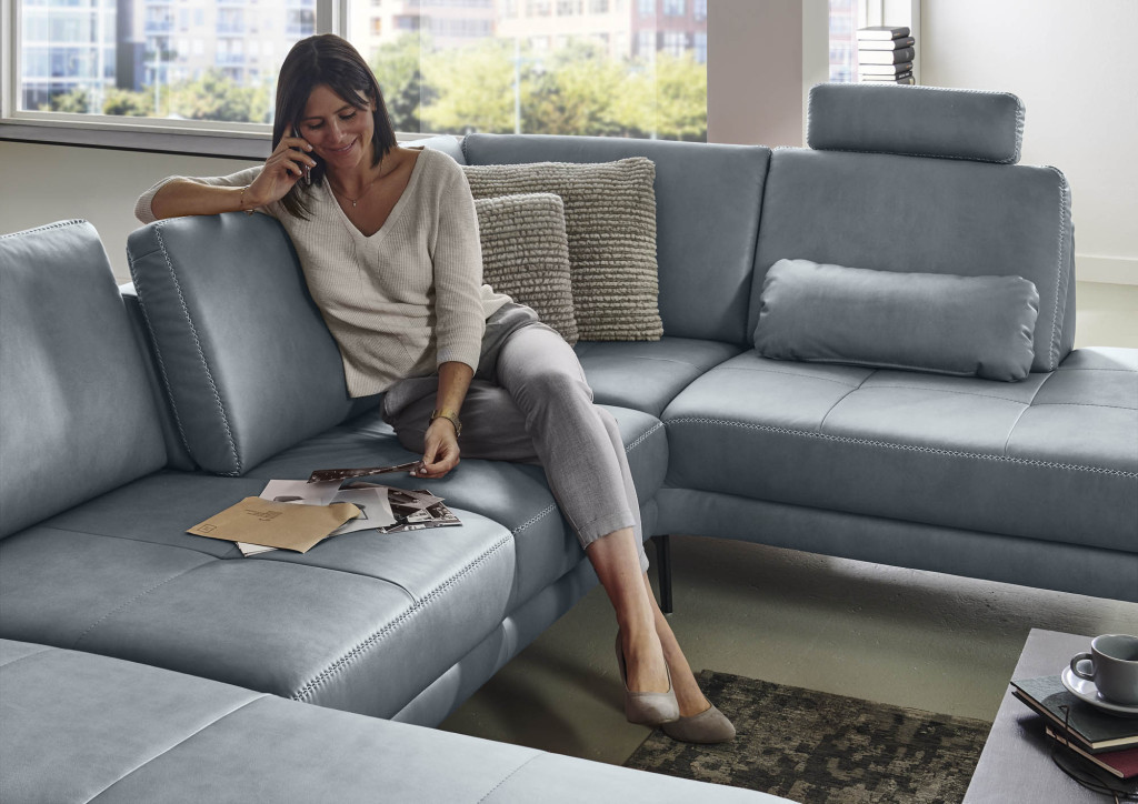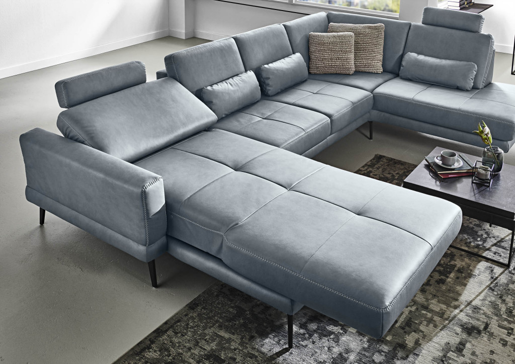 Je nach Vorliebe stehen zwei Sitzqualitäten zur Auswahl – Kaltschaum für elastischen Komfort oder Federkern für langlebige Stabilität. Dank des großen Typenplans lässt sich die Wohnlandschaft vielseitig konfigurieren und optimal an den eigenen Wohnraum anpassen.