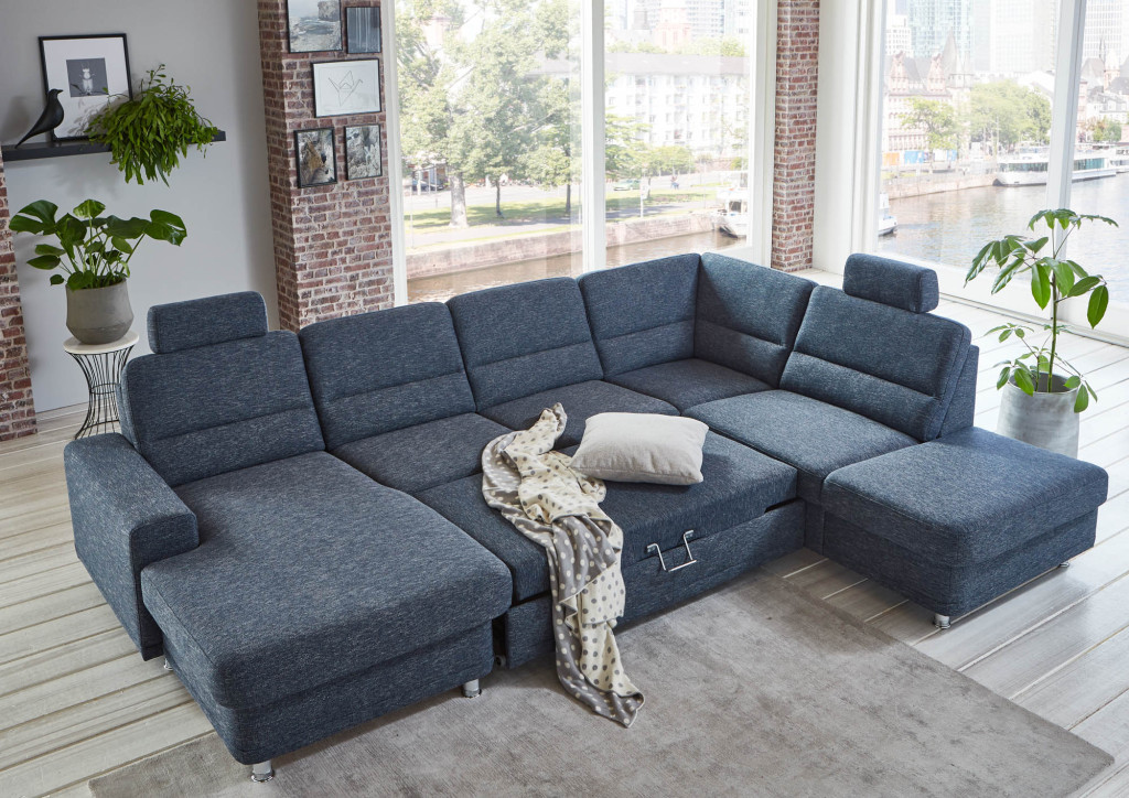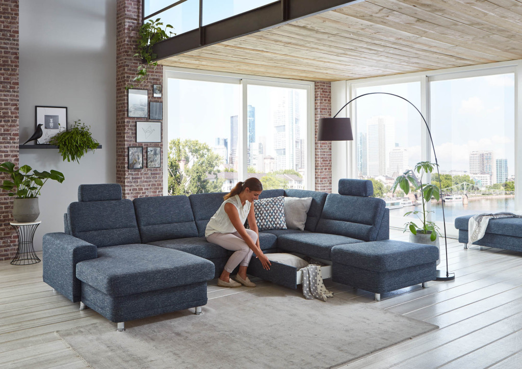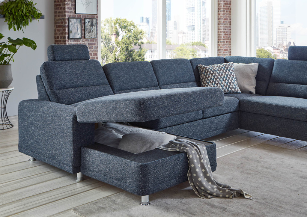 1,5-Sitzer Kombielement rechts mit Anstellhocker, Rücken echt, BHT ca. 88/85/234 cm