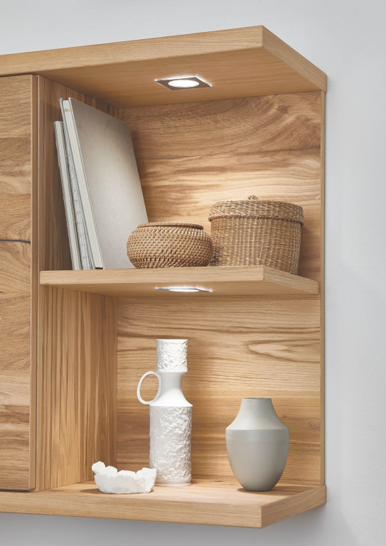 Eiche rustico hell geölt, Korpus und Front Echtholz furniert, Metallgriffe und -profile anthrazit matt, Beschläge mit Selbsteinzug und Dämpfung, Kombination, bestehend aus: