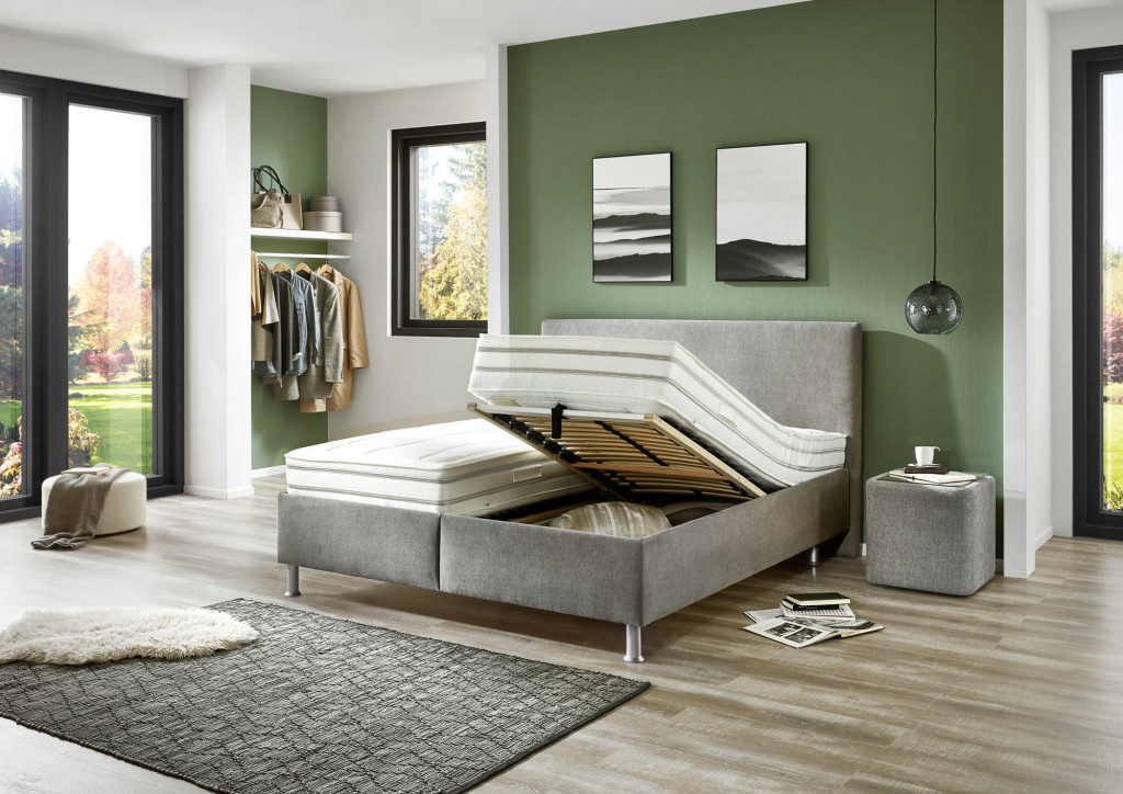 Bettkasten glatt Höhe ca. 29 cm, inkl. Bodenplatte gelocht, Luxus-Gasdruckfeder zum Öffnen,