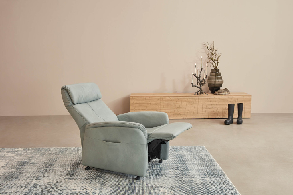 Leder 18 Longlife, Farbe canyon=steingrau, Rücken echt, Sitz Superlastic med, mit Rollen, Sitzhöhe 48 cm, Sitztiefe 51 cm, Sitzbreite 46 cm 26L - Relax-Sessel Basic, Fußteil und Rücken manuell verstellbar, Kopfteil manuell, BTH ca. 70/86-152/111 cm