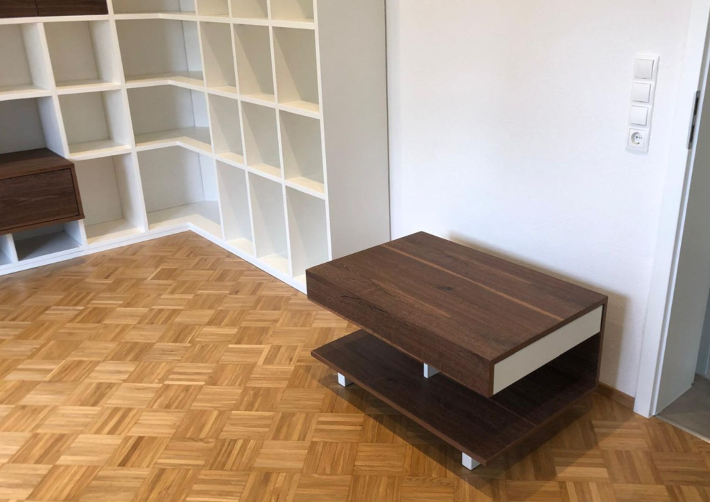 Als besonderes Highlight wurde der Couchtisch passend zur Wohnwand im gleichen Holz gefertigt, was den Raum harmonisch zusammenbringt und ergänzt.