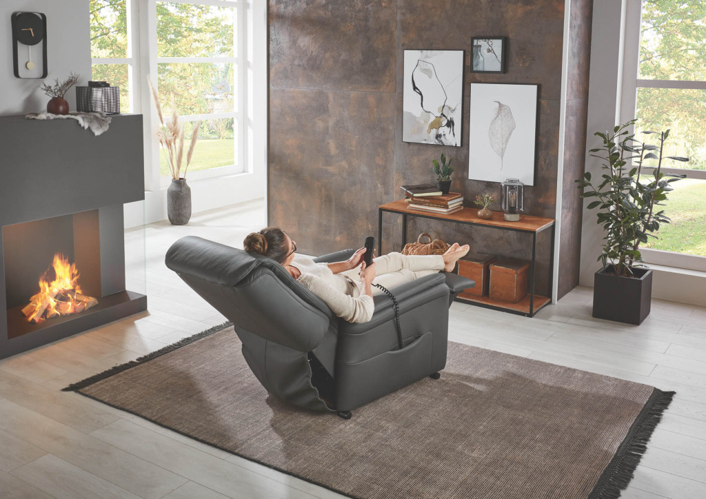 Dieser harmonisch gestaltete Relaxsessel ist in drei Größen erhältlich und bietet bereits in der Grundversion eine komfortable Verstellung von Beinauflage und Rückenlehne durch leichten Körperdruck. Auf Wunsch stehen alle Funktionen auch vollmotorisiert zur Verfügung. Für zusätzlichen Komfort und Sicherheit sorgt die integrierte Aufstehhilfe.