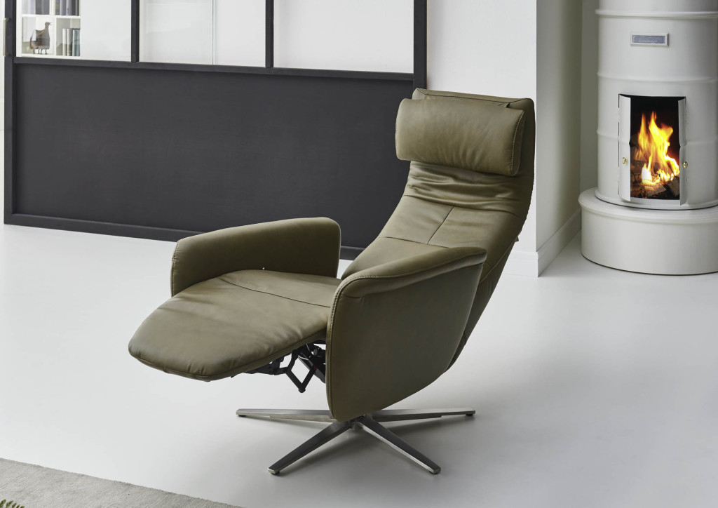 Dieses Modell ist ein echter Allrounder. Das hochklappbare Rückenpolster bietet Hochlehnkomfort und mehr Sitztiefe, während das integrierte Lendenkissen automatisch zum Nackenkissen wird. Durch leichten Körperdruck stellen Sie die Beinauflage ein und gelangen mühelos in eine entspannte Liegeposition.